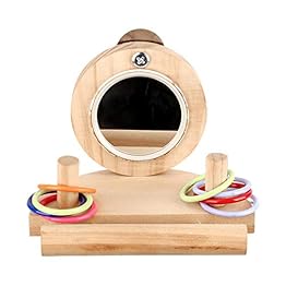 Eayse Vogel Spiegel Spielzeug – Holzspielzeug mit Sitzstange für Papagei, Wellensittich, Nymphensittich, Sittich, Fink…