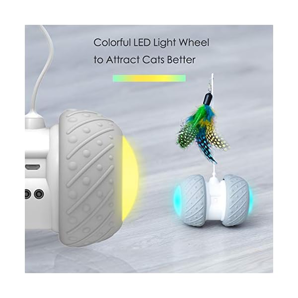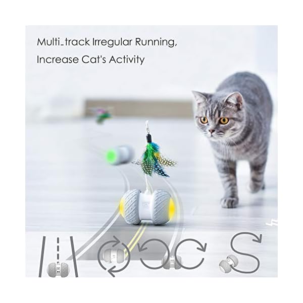 ??【Frische bewahren】 Zwei Motoren arbeiten unabhängig voneinander, um sicherzustellen, dass das Roboterspielzeug unregelmäßig läuft, und die Mehrspurigkeit erhöht das Bewegungsausmaß der Katze. Bunte led-leuchten. Mit einer Vielzahl von Federn befestigt. Sie können jedes leichte Spielzeug (durch eine weiße Linie) am Roboter befestigen. Sie können auch Ihr eigenes Spielzeug herstellen und die Katze frisch halten. Weitere Katzenfische, Küken und Vogelspielzeuge werden in Kürze erhältlich sein.
