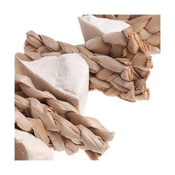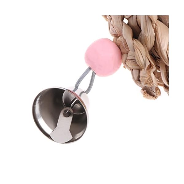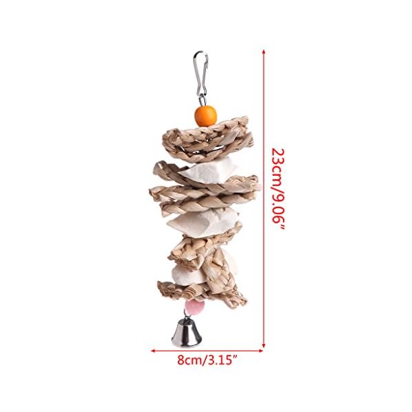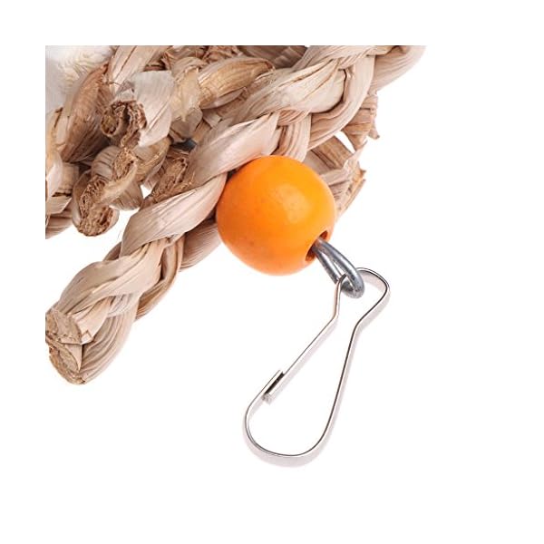 Mit einem Haken am Käfig hängen. Aus Holz und natürlichem Gras wird es das Interesse der Papageien erhöhen. Beißfestigkeit.