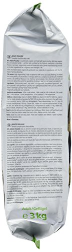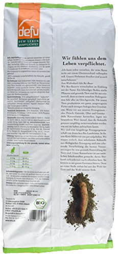 Das Premium-Trockenfutter „Adult Geflügel“ von defu ist eine ausgewogene Mischung aus leckerem Bio-Geflügel, vitaminreichen Bio-Karotten sowie aromatischen Kräutern, Buchweizen und Sorghumhirse aus kontrolliert ökologischem Anbau. Hochwertige, unbelastete Rohstoffe und eine schonende Verarbeitung sind die besten Voraussetzungen für ein kraftvolles und vitales Leben. Um von vornherein allergische Reaktionen oder Darmbeschwerden zu vermeiden, wurde auf Weizen komplett verzichtet. Und auf einiges andere auch! Die Bio-Bauern garantieren Ihnen: kein Fleisch aus Massentierhaltung, keine Pestizide und Lagerschutzmittel, keine Gentechnik, keine künstlichen Aromen, keine chemischen Konservierungsstoffe, keine chemischen Farb- und Geruchsstoffe. Zusammensetzung: 25 % Geflügelfleischmehl*, Sojakuchen, Reis (gemahlen)*, Buchweizen (gemahlen)*, Sorghumhirse (gemahlen)*, Maiskeimmehl*, Geflügelfett*, Leberhydrolisat aus Geflügelleber*, Meersalz, Karotten*, Thymian*, Rosmarin*, Petersilie* (Kräuter gesamt 0,046 %). *=Rohstoffe stammen aus biologischer Erzeugung. Analyse: Rohprotein: 30%, Rohfett: 16%, Rohfaser: 3%, Rohasche: 8%, Weitere Analytische Bestandteile: 1,35 % Calcium, 1,05 % Phosphor, 0,5 % Natrium, 0,1 % Magnesium. Nährstoffzusatz/kg: Vitamine/kg: Vitamin A (E672) 18000 I.E., Vitamin D3 (E671) 1200 I.E., Vitamin E (all-rac-alpha-Tocopherylacetat 3a700) 120 mg sowie alle weiteren Vitamine zur bedarfsgerechten Ernährung, Taurin 1000 mg. Antioxidationsmittel. Fütterungsempfehlung: Gewicht der Katze (Fütterungsmenge in Gramm pro Tag): Katze 2-3 kg ca. 20-40 g, Katze 3-5 kg ca. 40-65 g, Katze 5-7 kg ca. 65-85 g, Katze 7-10 kg ca. 85-105 g.