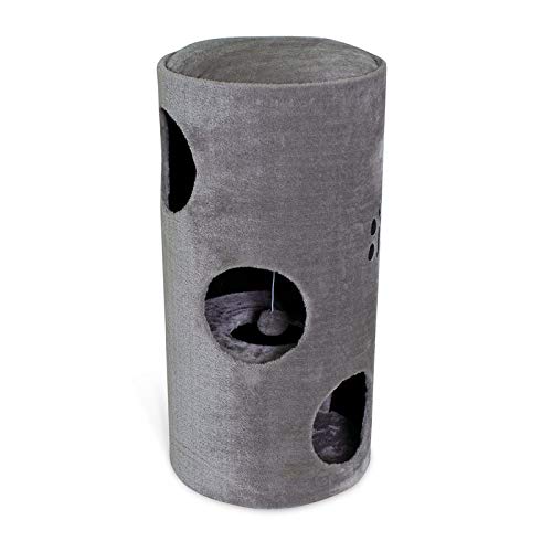 Dieser formschöne Kratzturm ist ein wahres Spielparadies für Ihren Liebling und eignet sich besonders als Rückzugsmöglichkeit, als Spielbeschäftigung und zur Krallenpflege. Er ist begehbar und bietet Ihrer Katze daher ideale Ruhe- und Rückzugsplätze. Die großzügige Aussichtsplattform gibt Ihrem Stubentiger den perfekten Überblick über das gesamte Geschehen und eignen sich optimal zum gemütlichen Entspannen und als bequeme Liegefläche. Ihre Katze kann sich an den strapazierfähigen Sisalflächen ausleben und ihre Krallen dabei optimal pflegen. Im Inneren der Kratztonne befindet sich zudem ein Spielball, der bei Berührung schnell hin und her schwingt und damit den natürlichen Jagdinstinkt der Katzen fördert. Produkteigenschaften: – Durchmesser: 40 cm – Höhe: je nach Wahl 58 cm oder 78 cm – großzügige Kratzflächen aus Sisal – 2 Einstiegslöcher bei 58 cm Höhe // 3 Einstiegslöcher bei 78 cm Höhe – 1 Plateau – robustes Sisal für die Krallenpflege