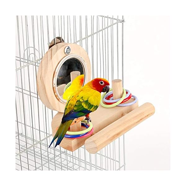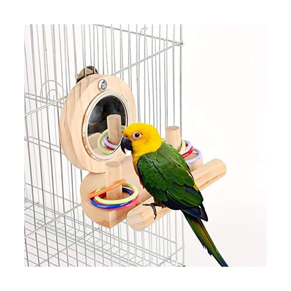 Eayse Vogel Spiegel Spielzeug – Holzspielzeug mit Sitzstange für Papagei, Wellensittich, Nymphensittich, Sittich, Fink…