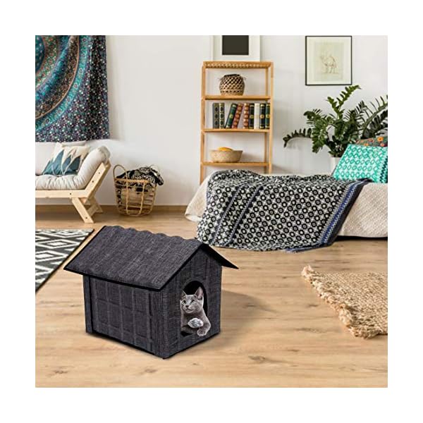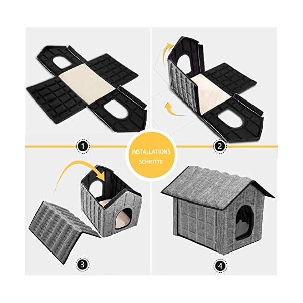 GWELL Katzenhaus Katzenhöhle Stabil Winterfest Faltbar Katzenhütte Haustier Haus Cat House mit Abnehmbarer Matratze…