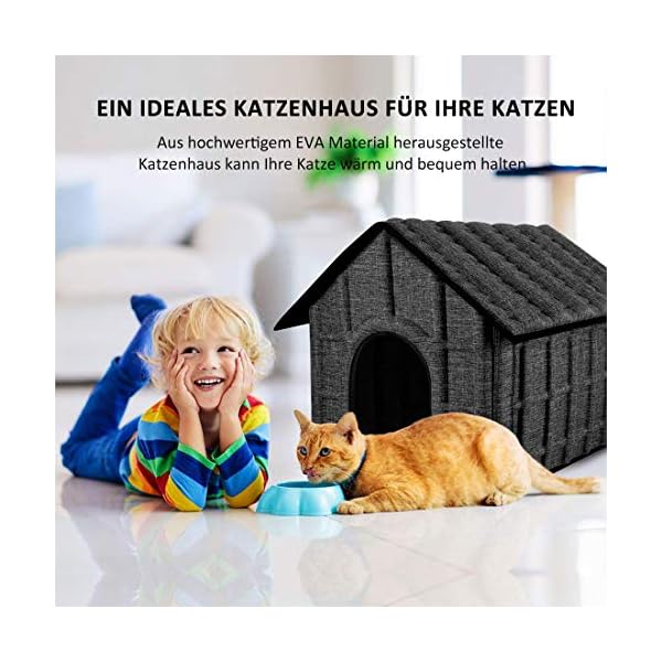 HOCHWERTIGES MATERIAL: Besteht aus hochwertigem EVA Material, stabil, langlebig und leicht; Eine Fleecematte ist in diesem Produkt enthalten, damit Ihre Katze darauf liegen oder schlafen kann, sehr weich und warm; Dieses Katzenhaus ist für drinnen und draußen geeignet; Das Material ist wasserdicht, kann vor kleinem Regen, schnee und Nebel schützen; Nicht leicht verformt