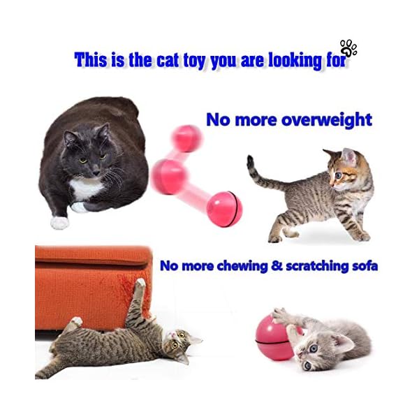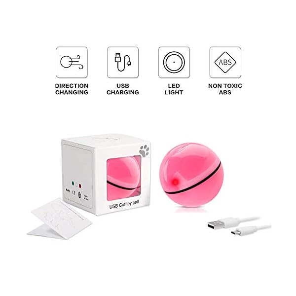 5) LED-Licht: der Ball leuchtet rotes Licht, während er sich bewegt, um die Aufmerksamkeit Ihres Kätzchens zu erregen.Kein Schaden für die Augen.