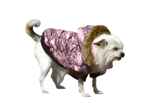 Dicker Steppmantel in rosa mit Fell-Kaputze für Ihren vierbeinigen Schatz. Genau das Richtige für den Spaziergang… Kapuze durch Reißverschluß abnehmbar.Bitte orientieren Sie sich an der Maßtabelle in der Bilder-Gallerie.Farbe: rosa Material: 100 % Polyester