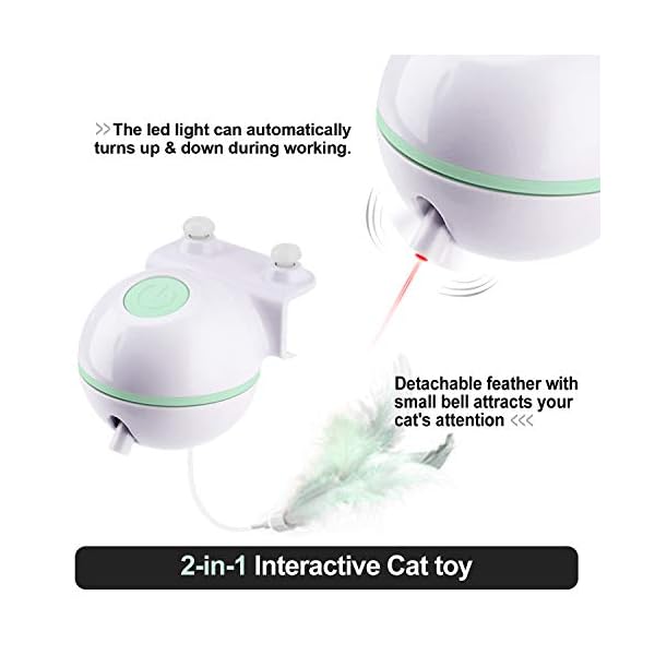 【2 in 1 drehen Neckerei Haustier Verfolgungsjagd Trainingsspielzeug】- Das federleichte, runde Katzenspielzeug kombiniert die Vorteile der rotierenden Katzenzauberstäbe und der automatischen Verfolgungsjagd, zwei verschiedene Spielzeuge in einem, damit Ihre Katzen gleichzeitig spielen können.