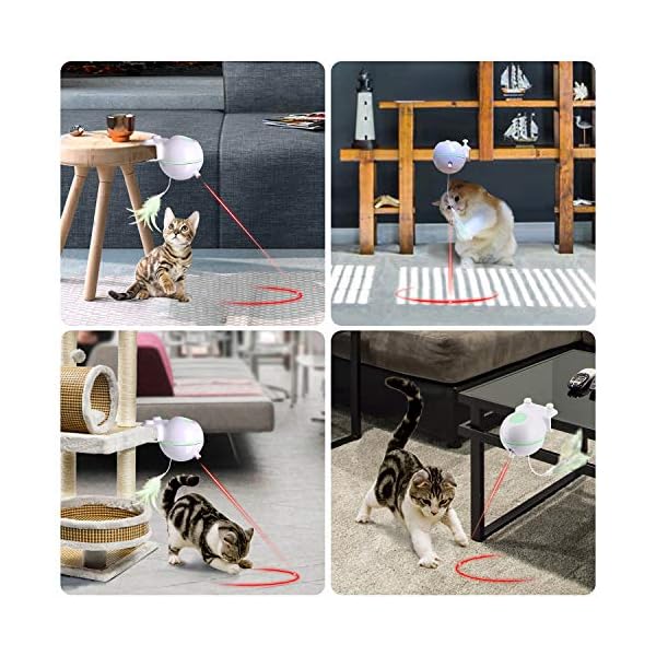 【Interaktives Katzenspielzeug】 – Die abnehmbare Feder mit der kleinen Glocke bewegt sich willkürlich über den Boden, was die Aufmerksamkeit Ihrer Katze auf sich zieht und sie dazu anregt, mit der intelligenten Route des LED-Lichts zu springen, zu jagen, zu schlagen, zu beißen und zu spielen Ihre Katze hat viel Spaß und hält sie davon ab, allein zu sein.