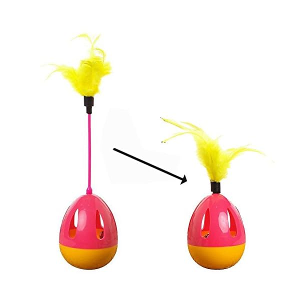 2.Langlebige Plastikkonstruktion, Gewichtete Basis schafft einzigartige Wobble Bewegung, mit Spinnfedern an der Spitze des Zauberstabs wird der natürliche Instinkt der Katze aktivieren.