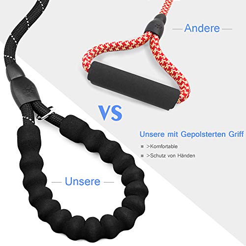 Gepolsterten Griff: Mit dem abgerundeten, weichen und gepolsterten Griff kann es Ihnen eine komfortable Haltenserfahrung anbieten, und deine Hände vor Verletzten schützen, wenn der Hundekumpel zu hart zieht, damit Sie entspannt mit Ihrem Hund spazieren gehen.