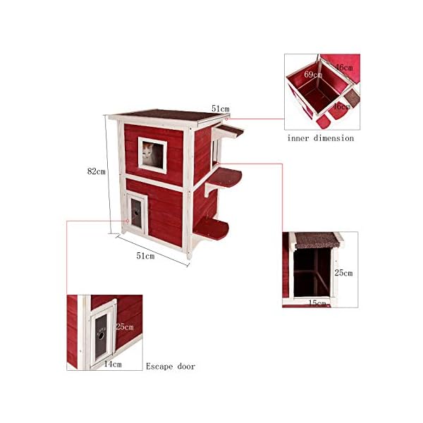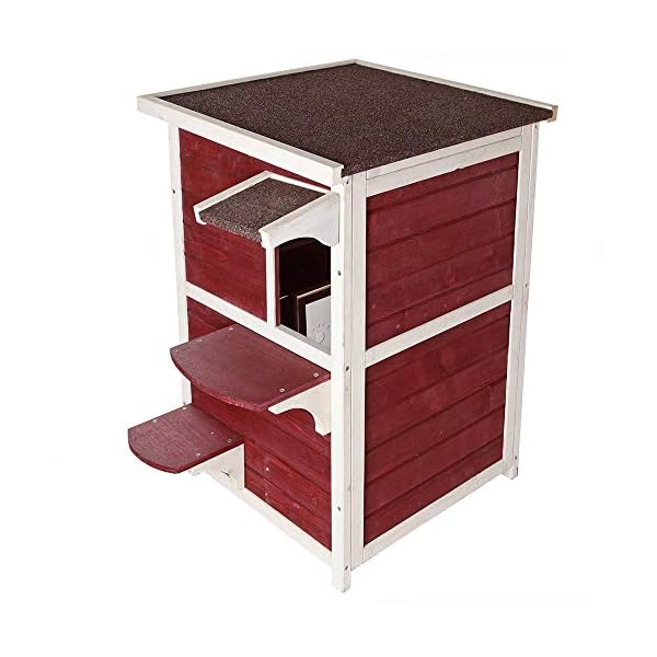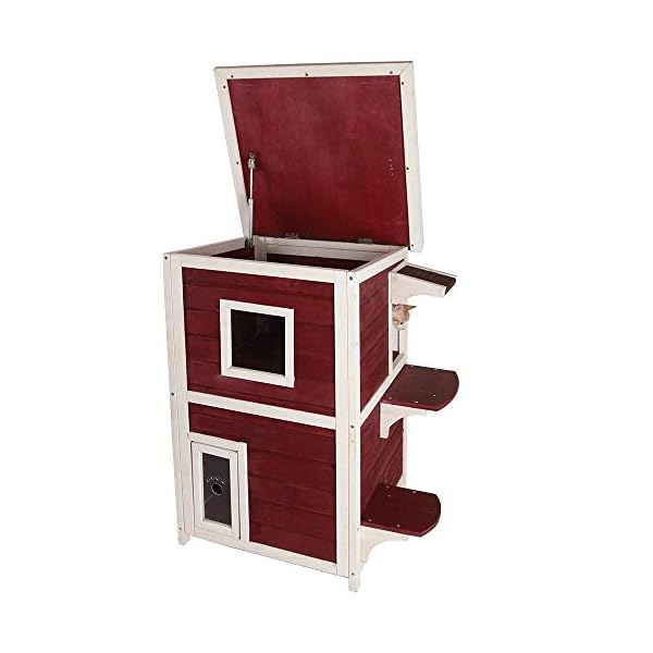 Zweistöckige Katzenwohnung für draußen. DACH KANN FÜR LEICHTERE REINIGUNG GEÖFFNET WERDEN