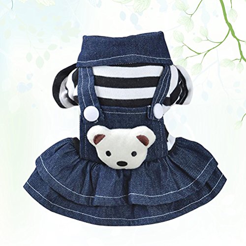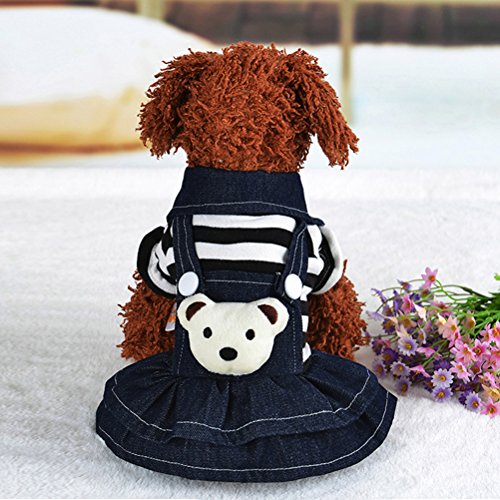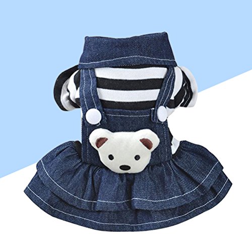 POPETPOP Hunde Bekleidung kleine Haustier Hund Katze Welpen Denim Strap Bär Kleid (XS)