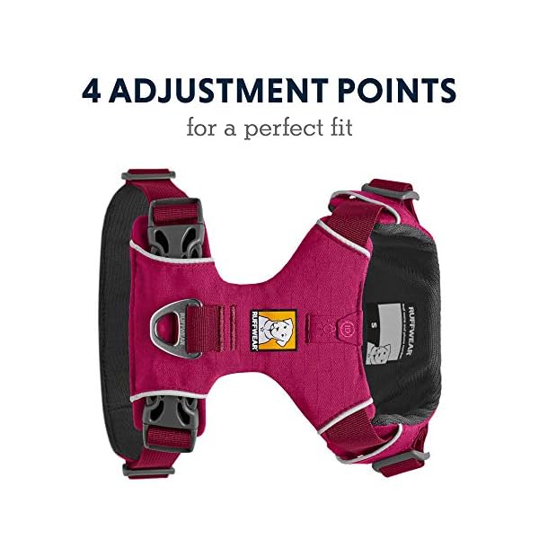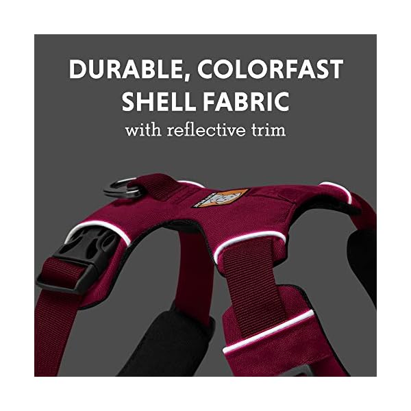 Leichtes und strapazierfähiges Hundegeschirr von Ruffwear mit V-Ring aus Aluminium in der Mitte des Rückens, das für ganztägige Outdoor-Abenteuer und zum einfachen Anbringen und Entfernen konzipiert ist